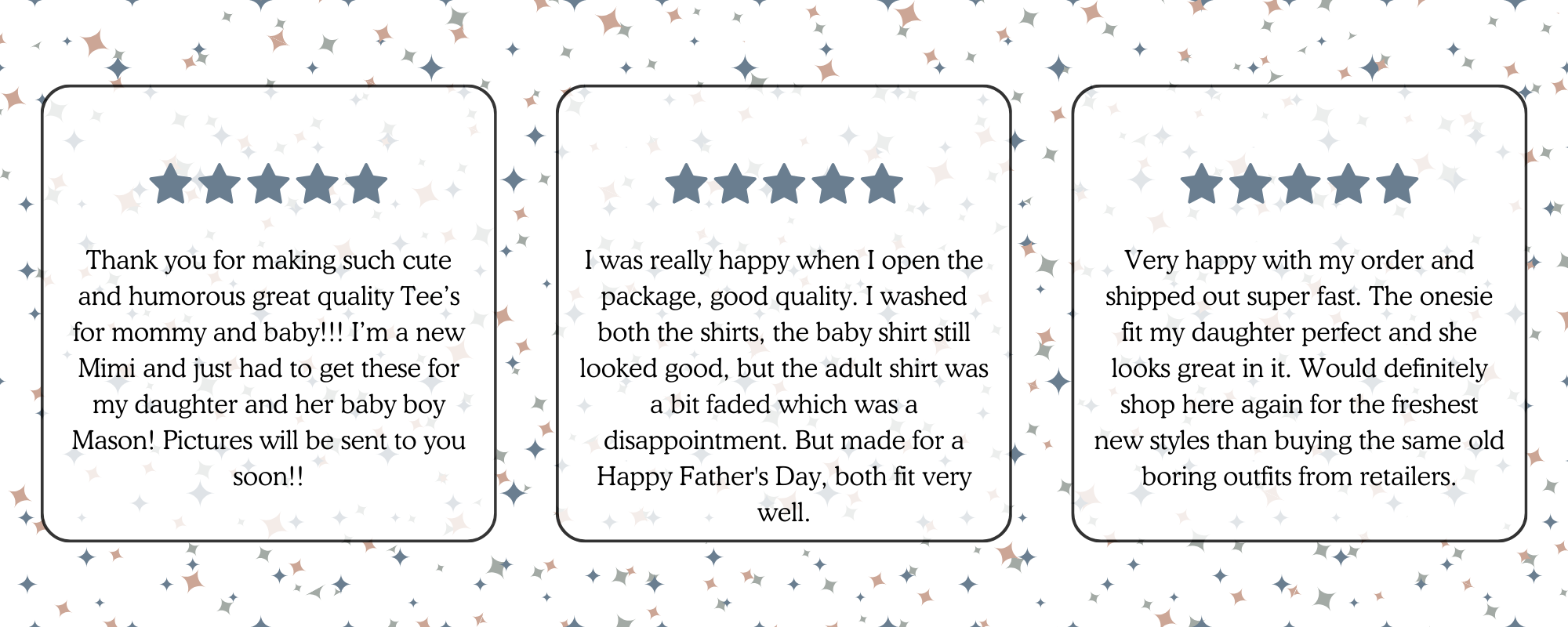 Our customers leave raving reviews on all of our products and we could not be more grateful! We love creating and offering more and more for our customers and love when y'all offer suggestions for new designs. We are available daily through email at support@babyswag.com!