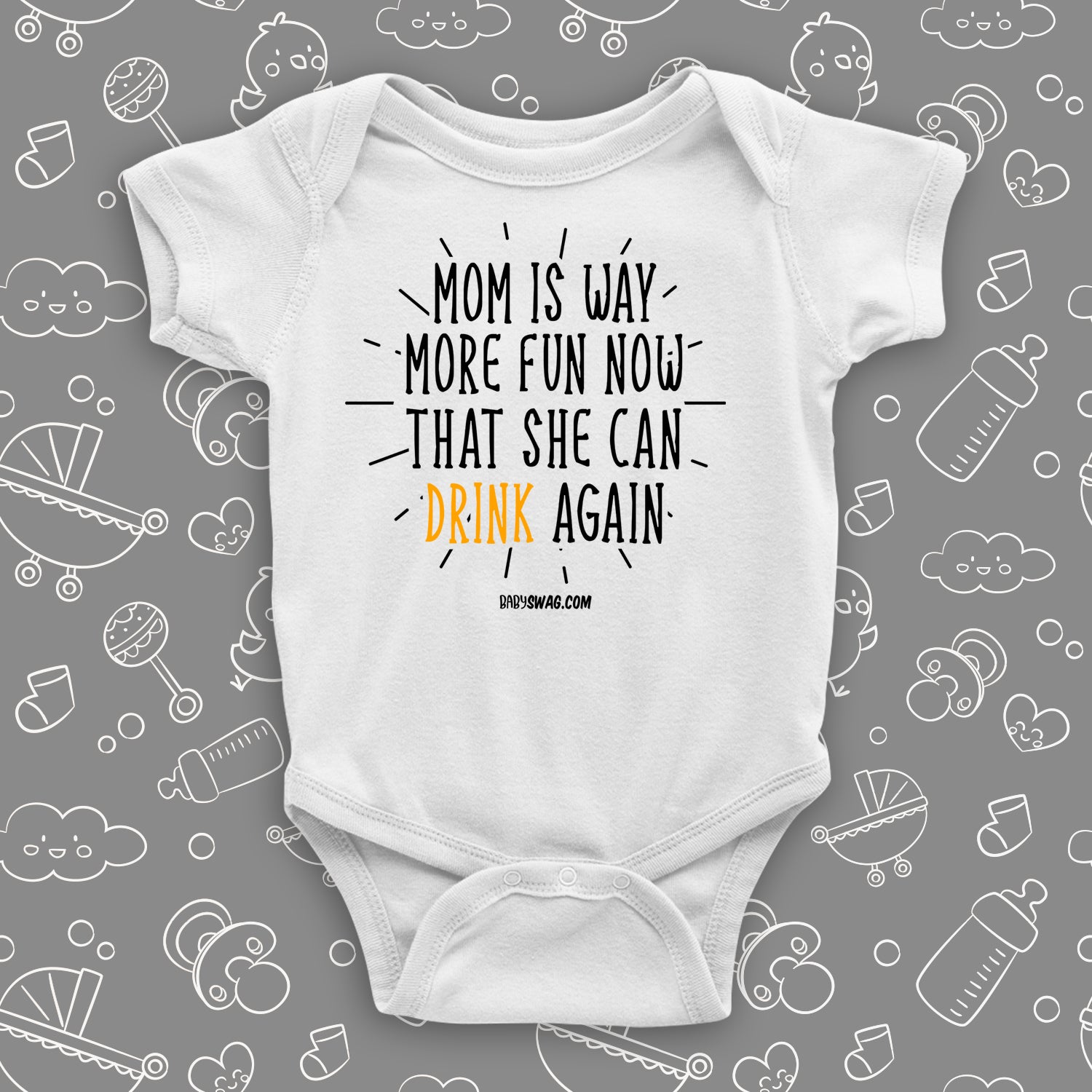 Everyone knows that "Mom Is Way More Fun Now That She Can Drink Again" and that's no secret. Well, until your baby learns what this means, you can enjoy making people laugh with these hilarious baby onesies while you grab a beer or two.