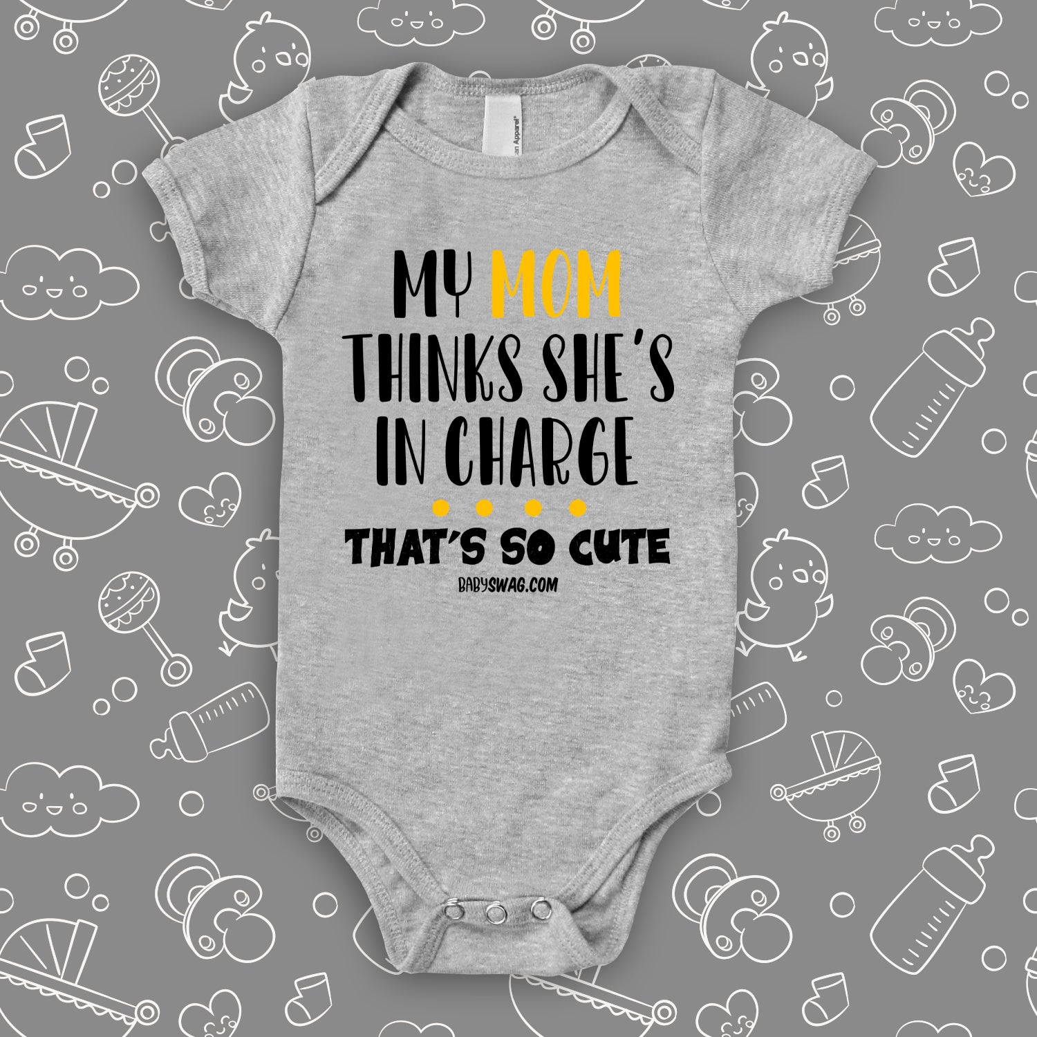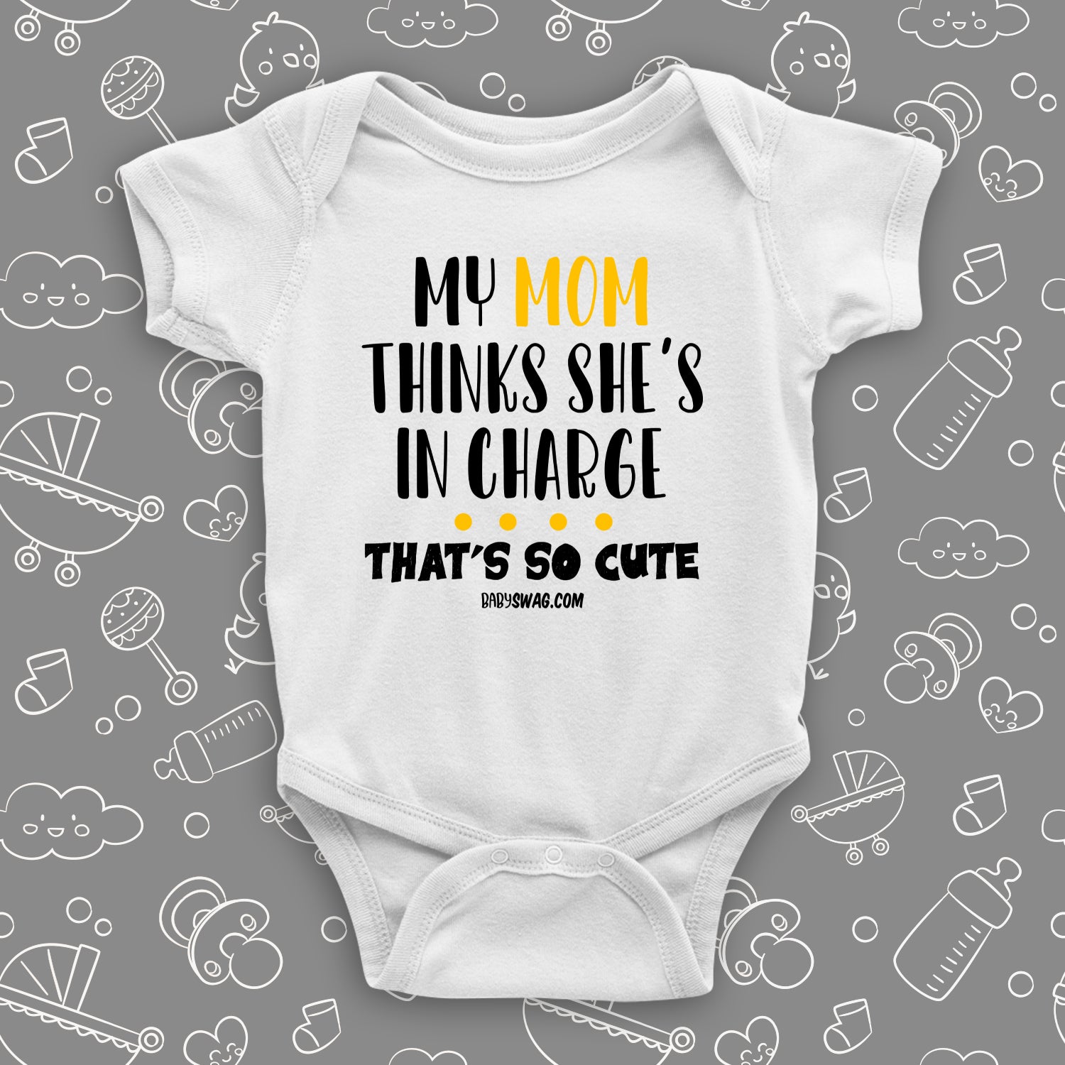 Sometimes, parents think that they are in charge. Make no mistake, with the funny yet cute baby onesie that states ''My Mom Thinks She's In Charge, That's So Cute'', you will never make that mistake again. Be real, the baby in the house makes all the rules.
