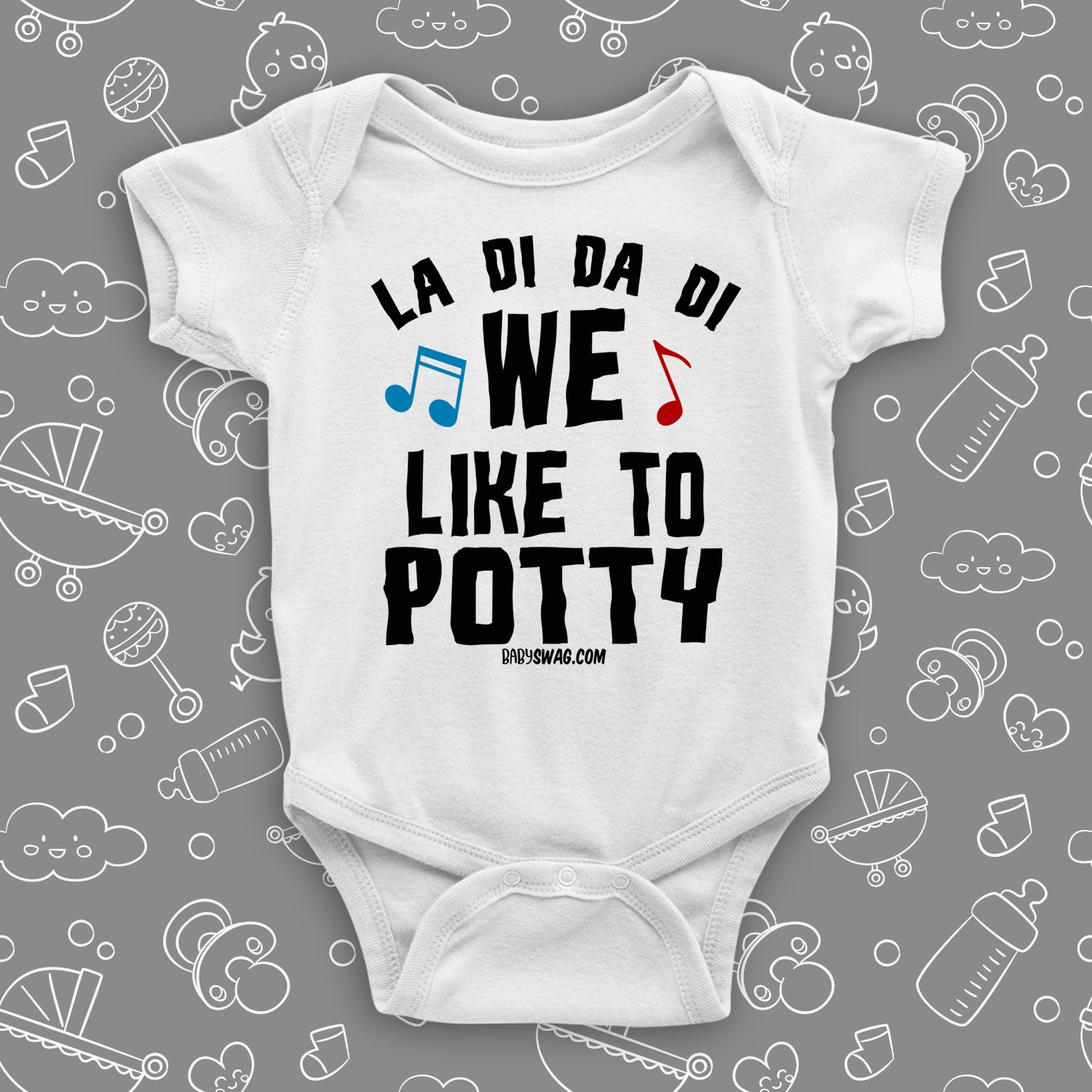 Potty training can be overwhelming, but not when you arm yourself with patience and funny baby onesies with witty sayings such as "We Likes To Potty". It's a good thing they are machine-wash safe and 100% cotton-made, so you can change them frequently.